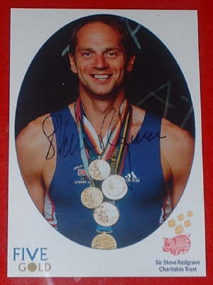 5 TIMES GOLD WINNING ROWING LEGEND STEVE REDGRAVE SIGNED OFFICIAL CARD