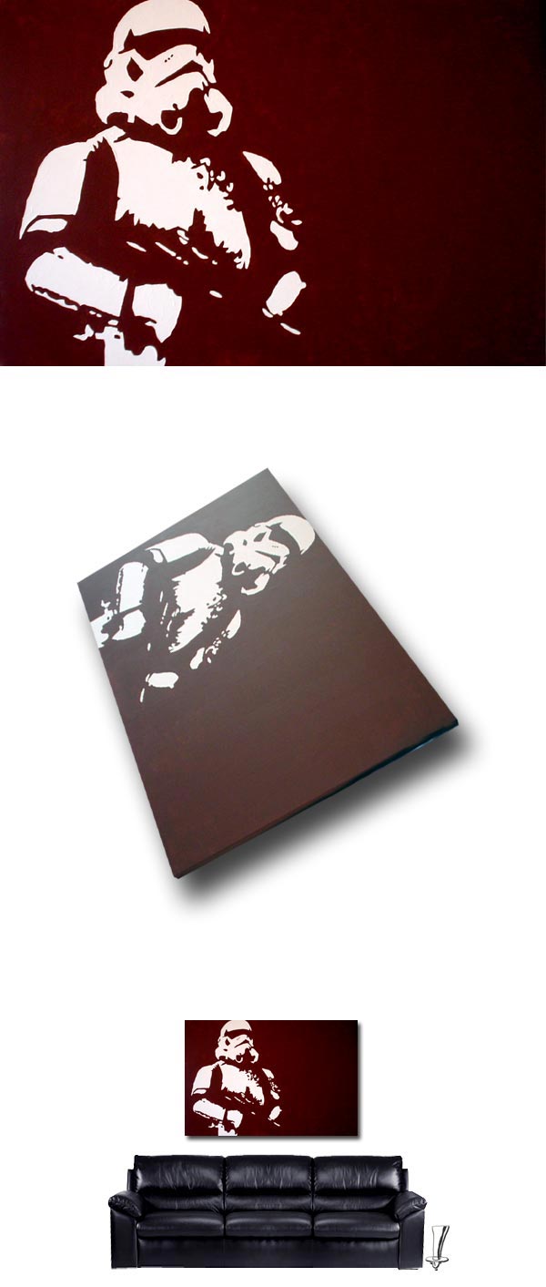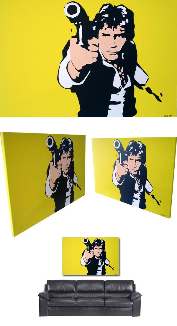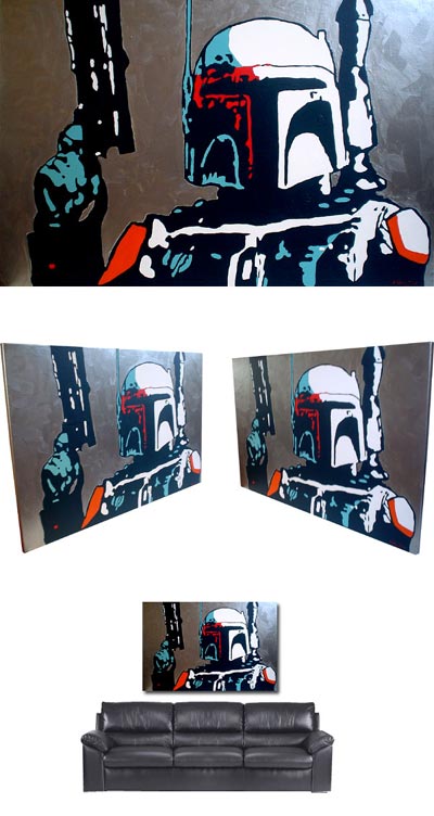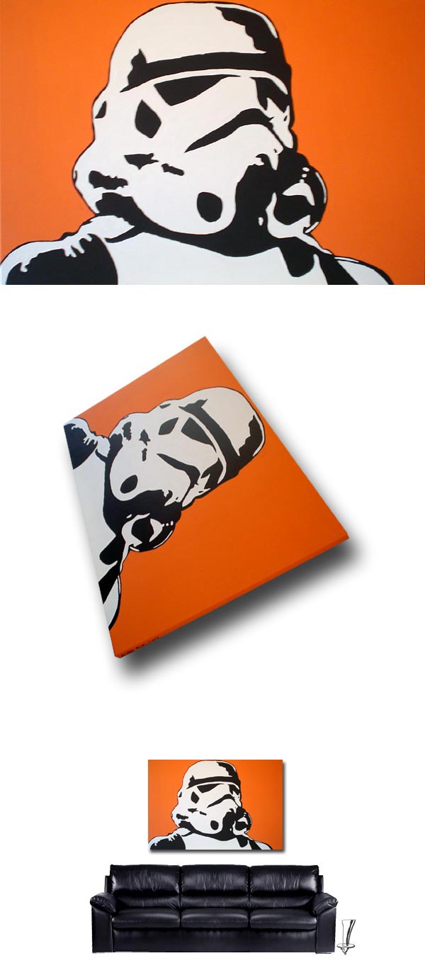 | ORIGINAL COMMISSIONED ARTWORK ON CANVAS, SIGNED AND VERY COLLECTABLE. MANY PURCHASED BY JEREMY BULLOCH, RICHARD CHASEMORE AND OTHER STAR WARS ACTORS. 36" x 24" stretched canvas (Contact for delivery outside the UK) |